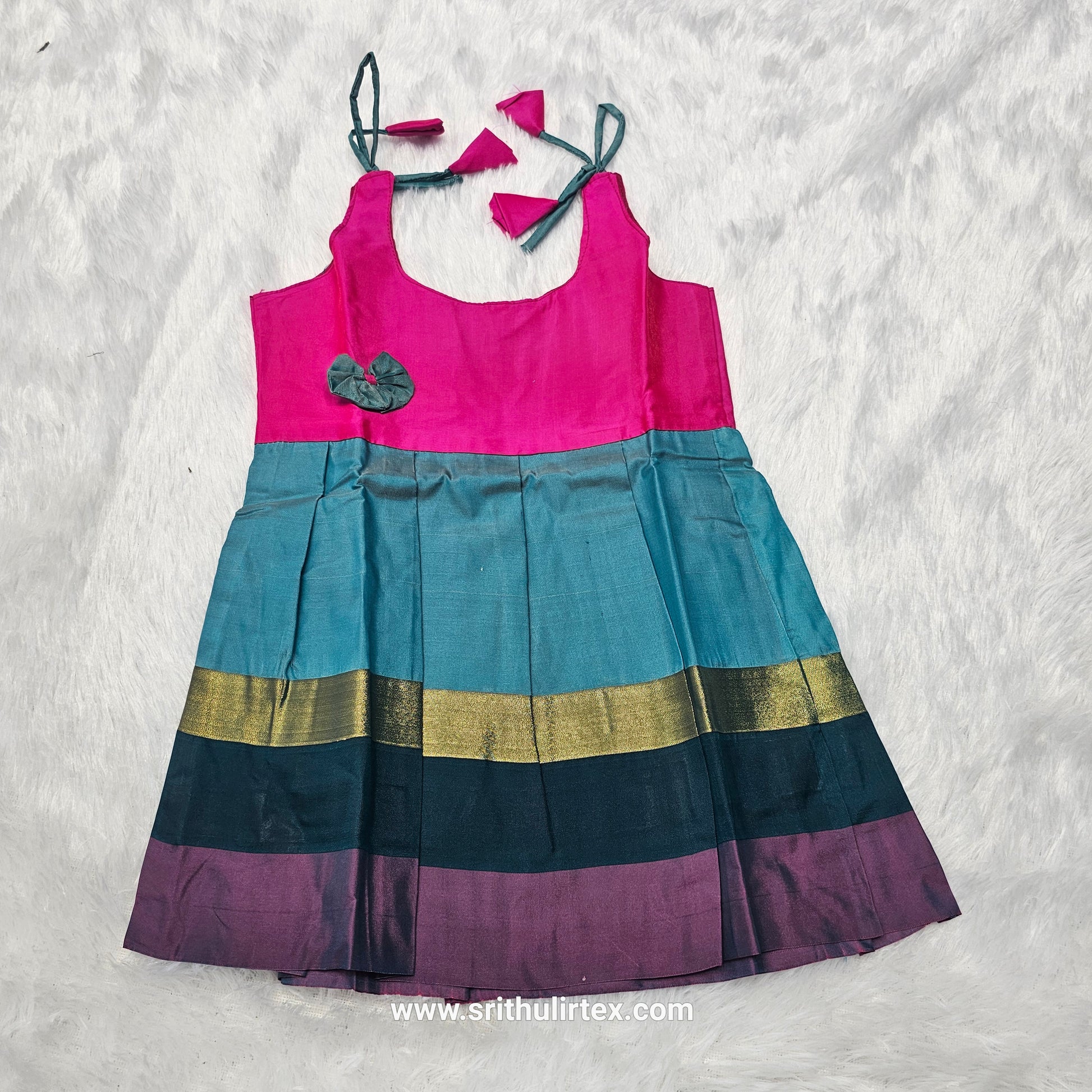 7 Month To 12 Month Baby Silk Frock Multi-Colour Border | Rope Type Design | Sri Thulir Tex (Batch-5)