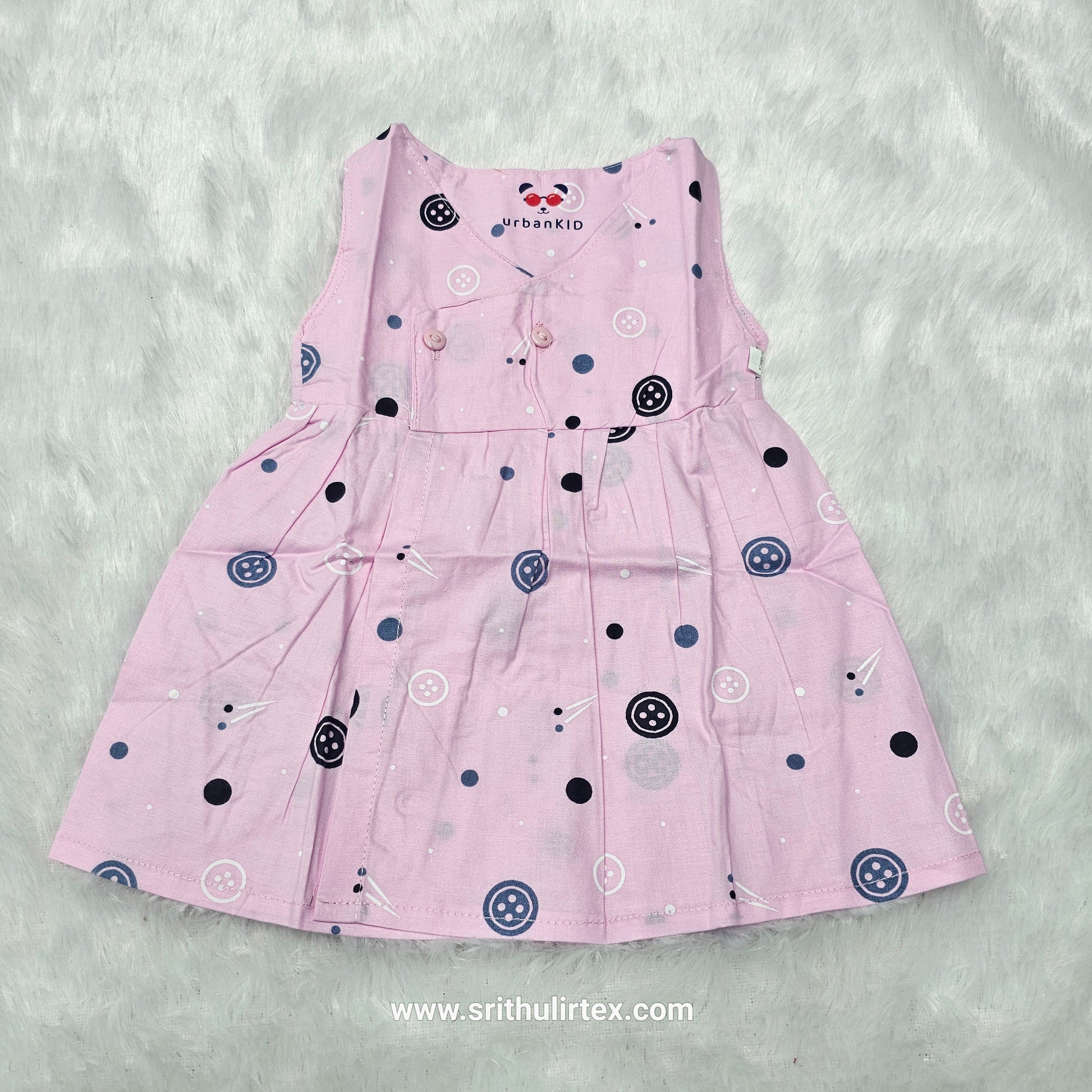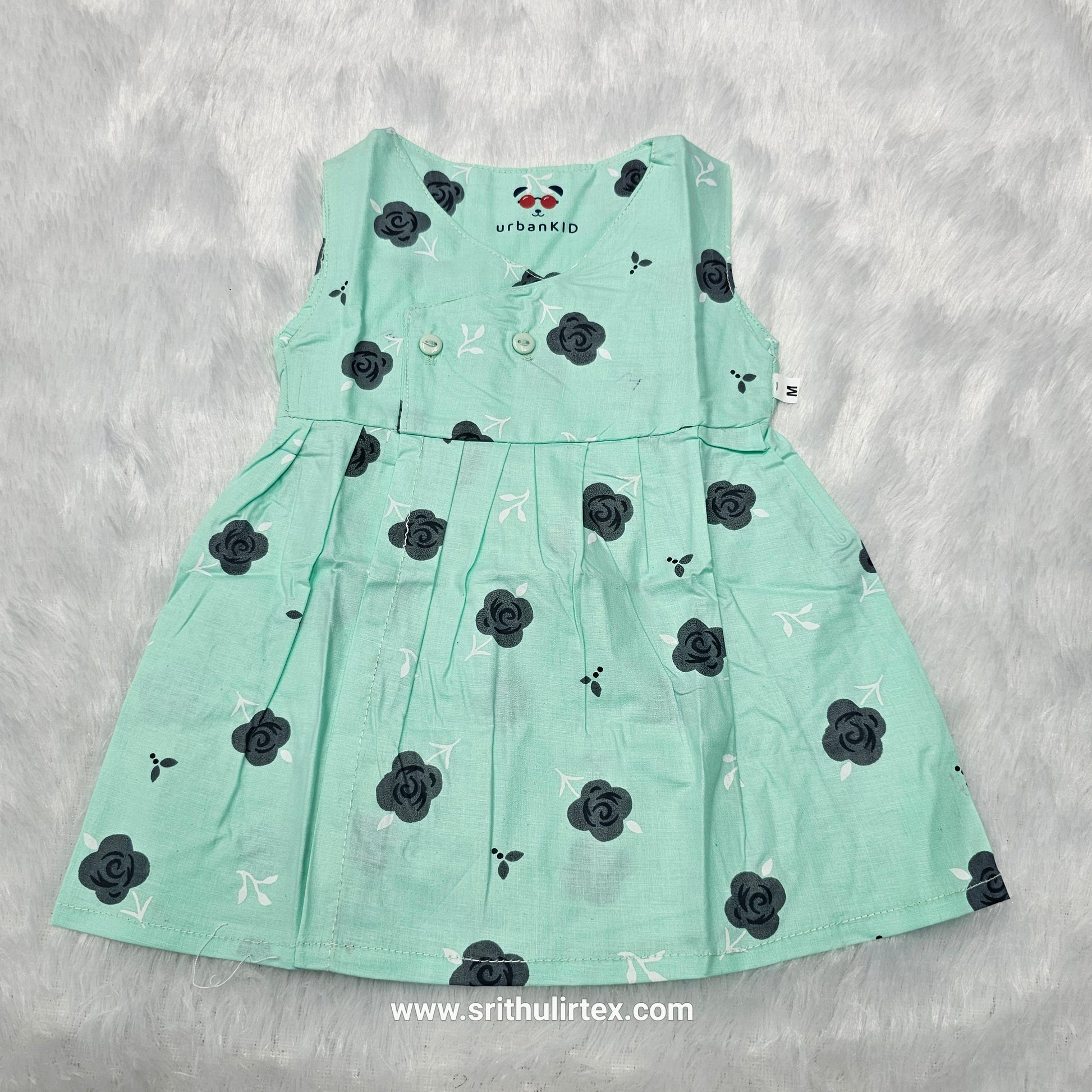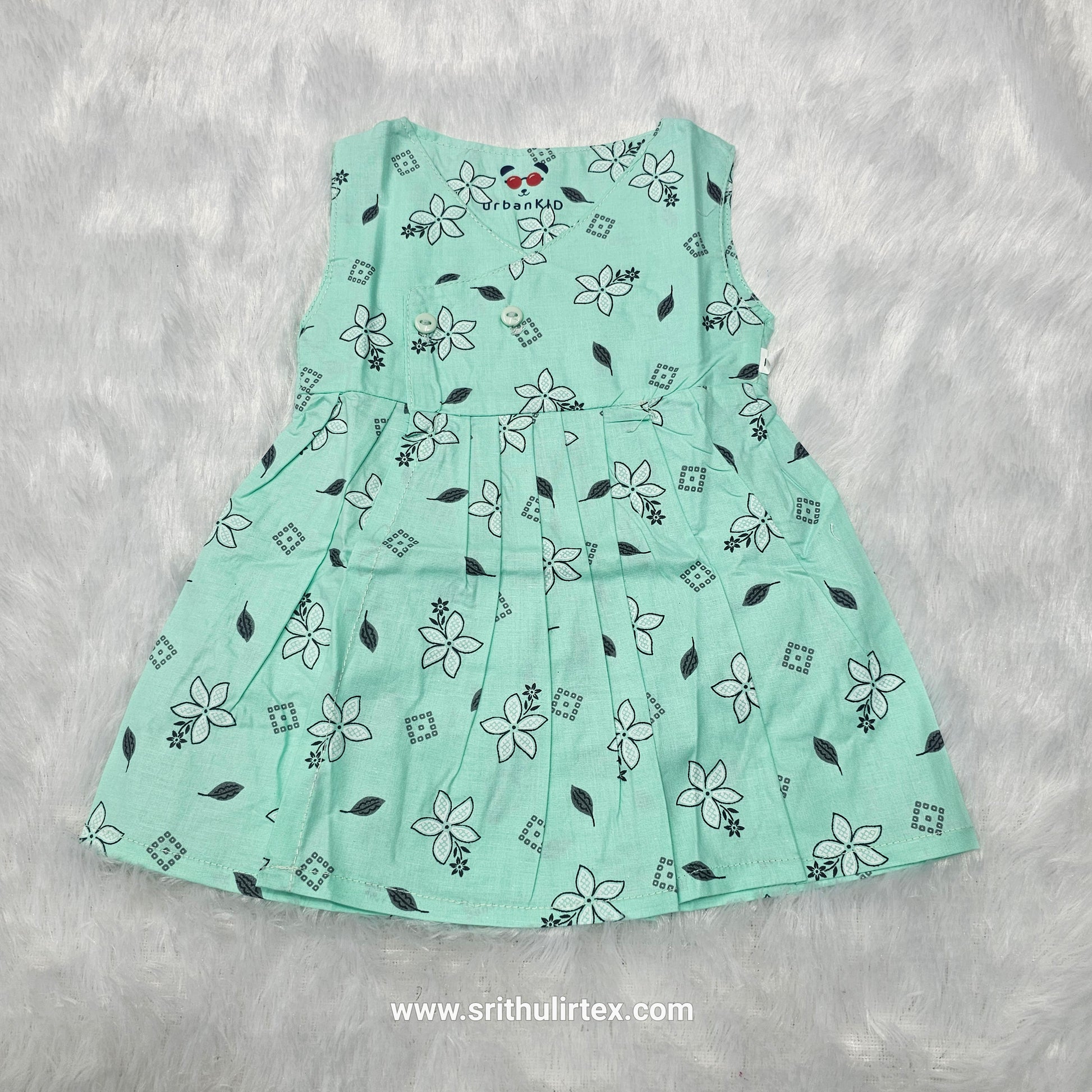 Cotton Printed Baby Frock – Front Open Button Type | New Born to 6 Months | Sri Thulir Tex