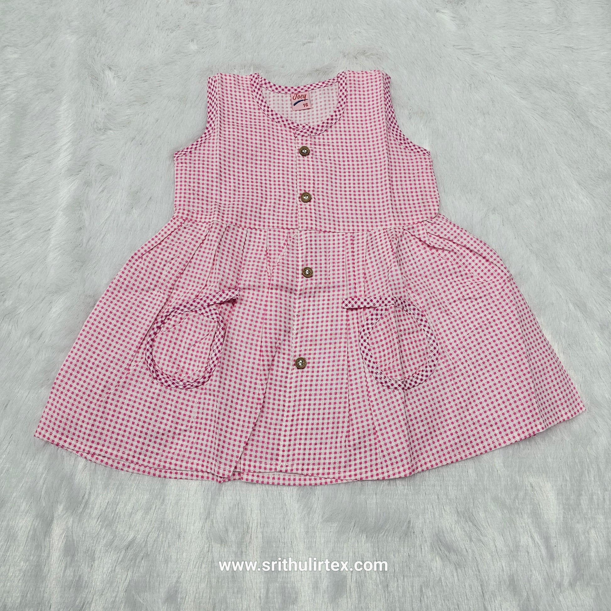 Cotton baby frock, button type baby frock, front open baby dress, baby frock 3 month, baby frock 6 month, baby frock 12 month, traditional baby wear, South Indian baby frock, Sri Thulir Tex